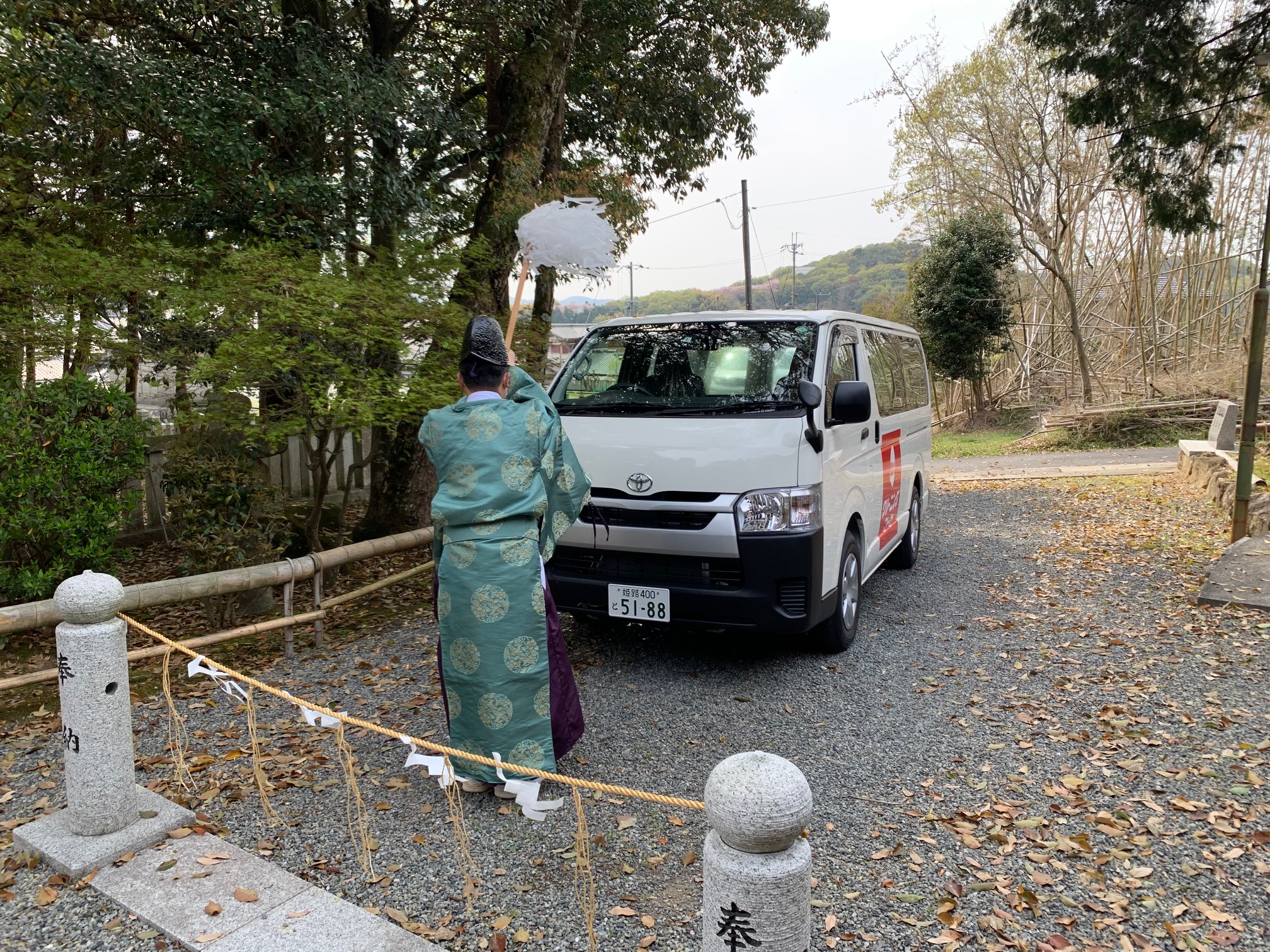 神職さまが、車のナンバーをご覧になられて一言。